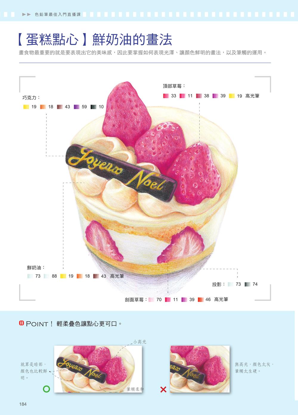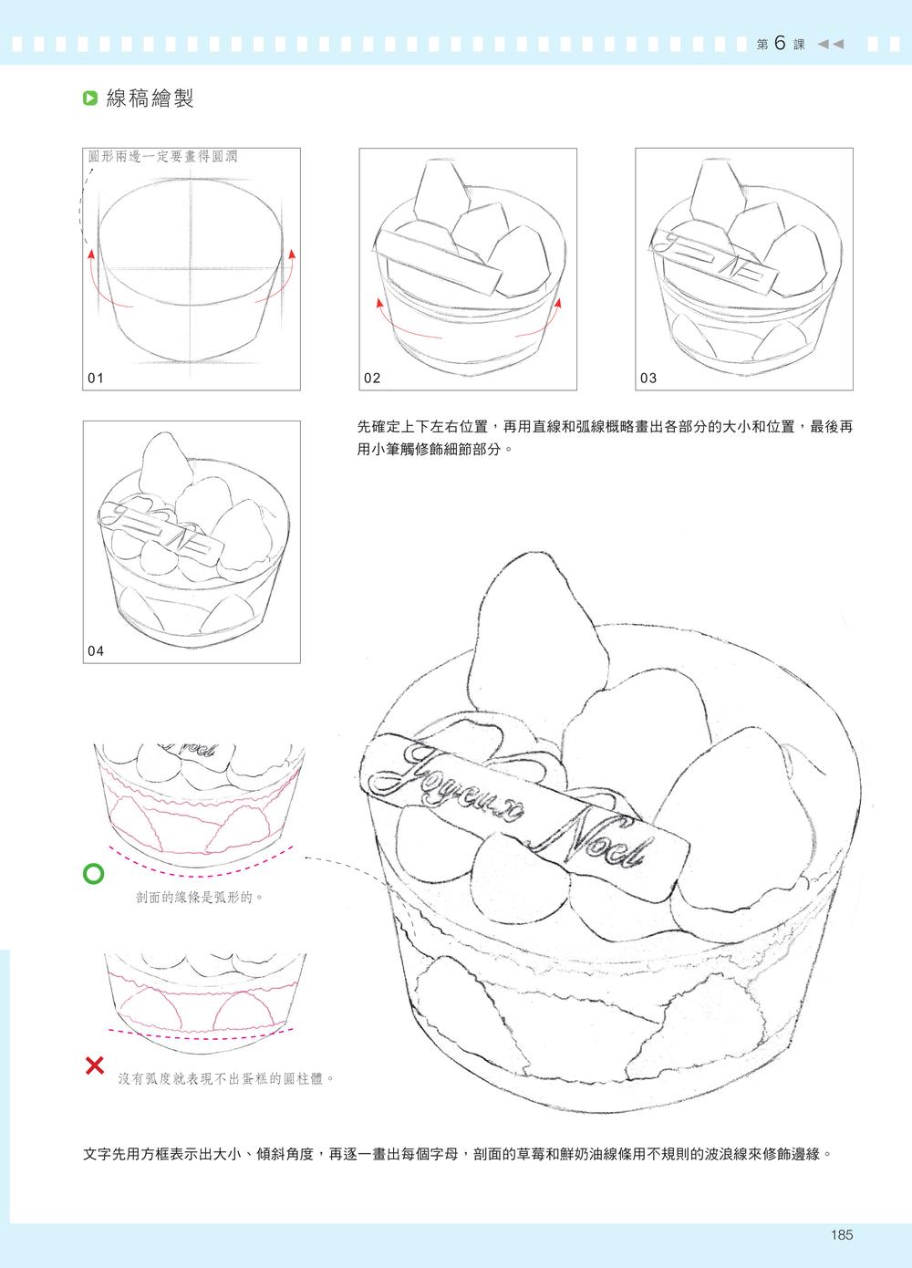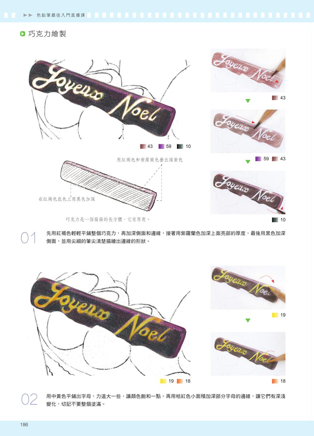 · 前言· 工具介紹· 線稿拓印法1 掌握明暗關係,3 招畫出逼真瓷器陶瓷質感的物體在色鉛筆畫中經常出現。在繪製時需要注意其材質的特點,清楚掌握陶瓷物體高光強烈、明暗交界線明顯且邊緣柔和、暗部深、反光強、表面能倒映其他物體投影的特性。1.1 一張圖看明暗關係1.2 四種線條表現陶瓷質感【紫色小碗】【海豚筷架】【青瓷茶杯】2 把光影知識融入實踐,打造真實金屬質感金屬材質的物體在色鉛筆學習中是一大難點。金屬的強烈反光、強烈的明暗對比、堅硬的質感、清晰的邊界,以及表面上其他物體清晰的投影,都是其最顯著的特點。2.1 金屬光影的最大特點2.2 金屬質感的線條組合【金屬鉚釘】【復古金屬夾】【珍珠胸針】3 捕捉陽光和影子,畫出透明質感透明質感的物體在受光照射時,會出現晶瑩剔透的光影效果。這種透亮的光影是繪製透明物體時的重點與難點。繪製透明物體時,要清楚地認識到它有清晰的高光、柔和的反光、模糊的明暗交界線,以及面積不大但清晰的暗部。3.1 如何呈現透明質感3.2 三招表現透明質感【碧璽耳環】【兒時的玻璃彈珠】【晶瑩玻璃杯】4 依照物體本身,畫出有質感的紋理在繪製紋理質感時,要注意紋理與物體本身的關係。分析紋理的走勢應從物體本身的透視開始,不可脫離物體單獨觀察紋理。紋理的透視要與物體本身的透視一致,而與物體色調相近的紋理,可以用同一色系的顏色來呈現。4.1 表面花紋的光影4.2 紋理的繪畫方法【小木勺】【鳶尾花】5 先鋪底色再畫細節,輕鬆畫出毛茸質感動物的毛髮多變,長短、軟硬、直捲各自不同,但整體來說,它們的明暗對比都沒有其他物體強烈。動物毛髮的漸層均勻柔和,根根分明,而新手常將滑順細膩的毛髮畫得雜亂粗糙,這是因為不知道如何處理毛髮質感。5.1 毛髮的光影特點5.2 不同的毛髮筆觸【可愛的小黃鴨】【紅鶴】【畫隻貓吧】6 新手也能畫得超逼真,練習更多其他質感我們在用色鉛筆繪畫時,還會遇到一些其他質感的物體,比如表面柔和的塑膠質感,或是凹凸不平的坑洞紋理質感等等。在繪製這類物體時,要先分析它們的質感特點。遇到不同的質感不用緊張,從它的特點去分析,畫起來就簡單多了。【紙鶴】白色物體的畫法【海螺蠟燭】凹凸質感的畫法【Sonny Angle】塑膠質感的畫法【鋁箔紙糖果】鋁箔紙的畫法【蛋糕點心】鮮奶油的畫法