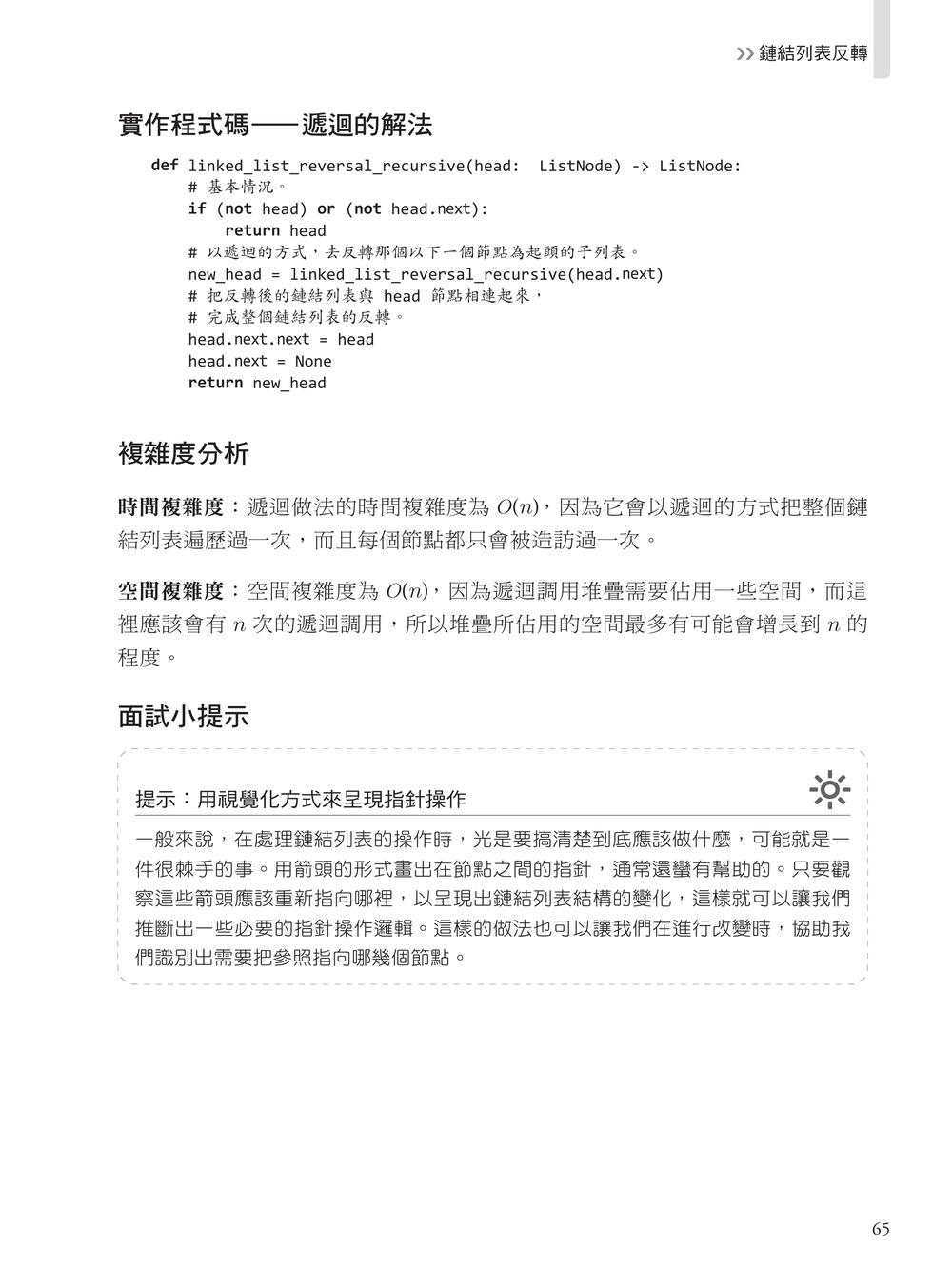 第1章:雙指針(Two Pointers)第2章:雜湊對照表& 集合(Hash Map & Set)第3章:鏈結列表(Linked List)第4章:快指針& 慢指針(Fast & Slow Pointer)第5章:滑動視窗(Sliding Window)第6章:二分搜尋法(Binary Search)第7章:堆疊(Stack)第8章:堆積(Heap)第9章:區間(Interval)第10章:前幾項加總和(Prefix Sum)第11章:樹狀結構(Tree)第12章:檢索樹(Trie)第13章:圖譜(Graph)第14章:回溯(Backtracking)第15章:動態規劃(Dynamic Programming)第16章:貪婪(Greedy)的做法第17章:排序 & 搜尋第18章:位元操作(Bit Manipulation)第19章:數學 & 幾何