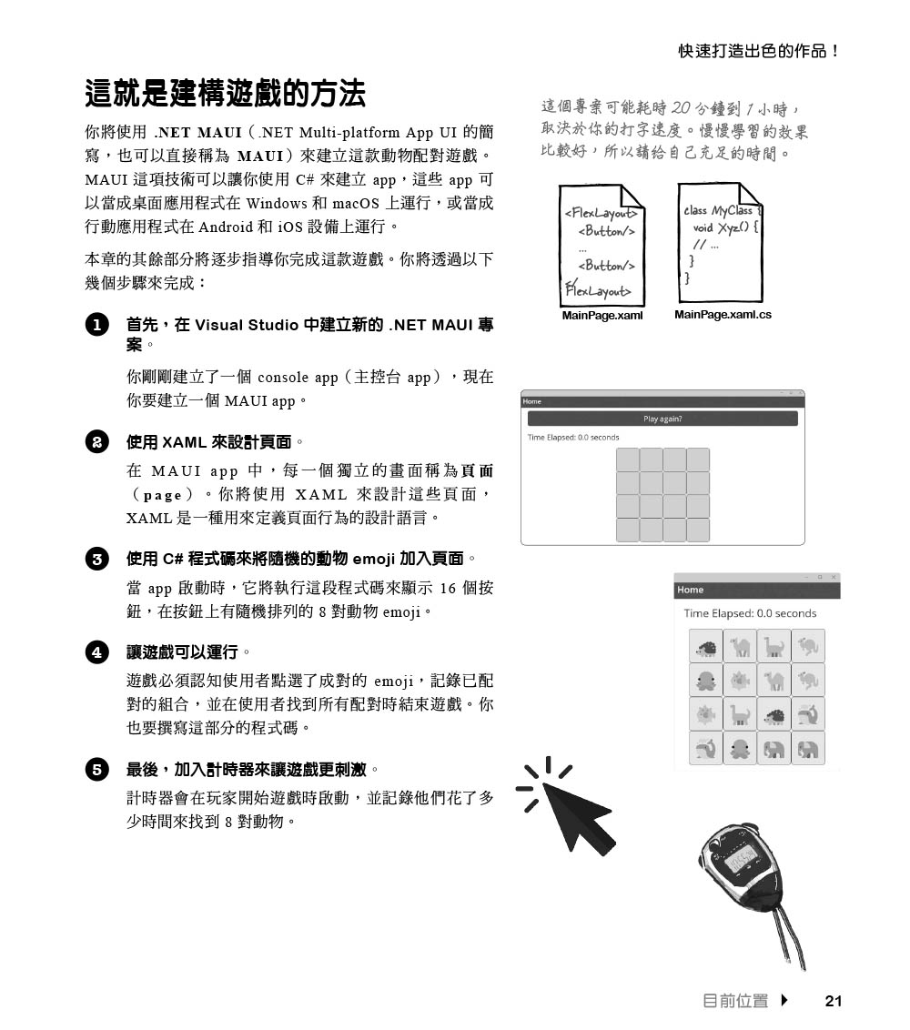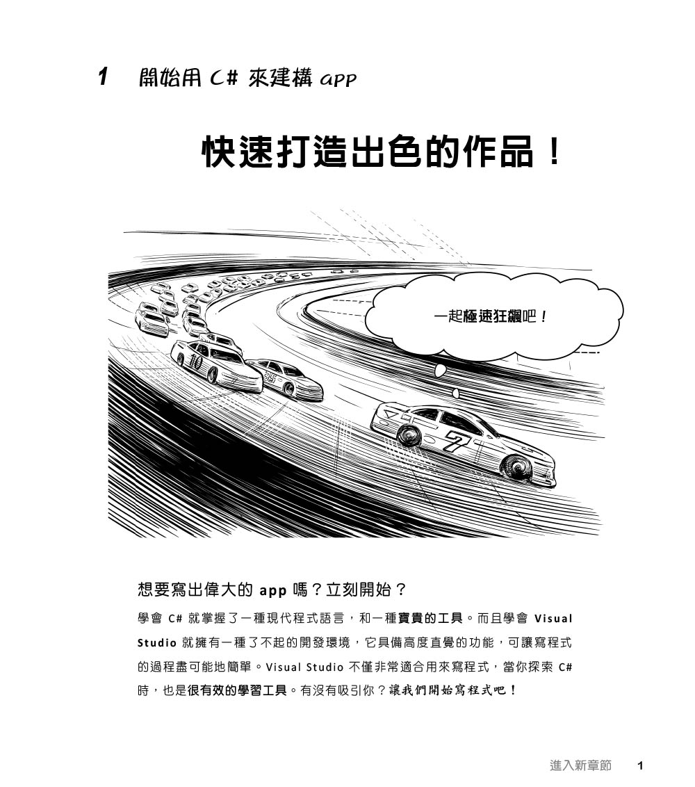 1 開始用C#來建構app:快速打造出色的作品!2 變數、陳述式,與方法:鑽研C#程式碼 Unity實驗室#1:用Unity來探索C# 3 名稱空間與類別:組織你的程式碼 4 資料、型態、物件,與參考:管理app的資料 Unity實驗室#2:為Unity撰寫C#程式 5 封裝:物件如何保守祕密 6 繼承:物件的族譜 Unity實驗室#3:GameObject實例 7 介面、轉型與「is」:讓類別信守它們的承諾8 列舉與集合:整理你的資料 Unity實驗室#4:使用者介面9 LINQ 與 lambda:控制你的資料 10 讀取與寫入檔案:幫我儲存最後一個byte ! Unity實驗室#5:Raycasting(射線投射)11 神奇隊長:物件之死 12 例外處理:沒人喜歡疲於奔命 Unity實驗室#6:場景導航