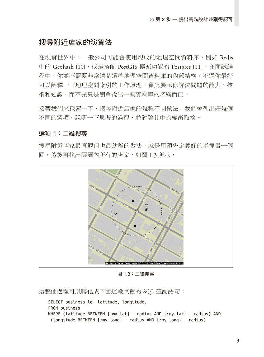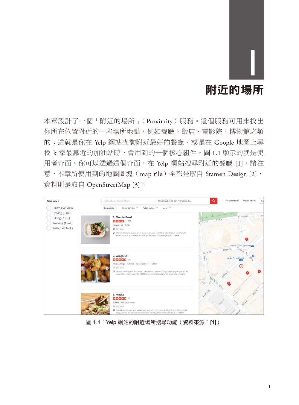 第1章:附近的場所第2章:人在附近的朋友第3章:Google 地圖第4章:分散式訊息佇列第5章:指標監控警報系統 第6章:廣告點擊事件彙整 第7章:飯店預訂系統第8章:分散式 Email 服務第9章:類似 S3 的物件儲存系統第10章:即時遊戲排行榜第11章:支付系統第12章:數位錢包第13章:證券交易所後記