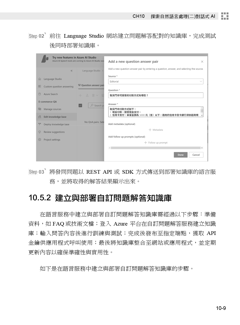 第1章 Microsoft Azure AI 基本概念:使用人工智慧的開始1.1 人工智慧簡介1.2 Microsoft Azure AI 簡介1.3 模擬試題第2章 負責任的 AI2.1 AI 造成的道德和社會問題2.2 了解負責任的AI2.3 申請Azure 帳戶2.4 模擬試題第3章 認識 Colab 程式編輯環境3.1 Colab 簡介3.2 安裝 Colab3.3 Colab 環境簡介3.4 編輯第一個 Colab 筆記本3.5 Colab 常用功能第4章 Gradio 互動式網頁4.1 簡介認識 Gradio4.2 Gradio 基本語法介紹4.3 Gradio 常用的輸出入元件第5章 探索電腦視覺(一)電腦視覺分析5.1 Azure AI 視覺簡介5.2 Azure AI 視覺服務5.3 Azure AI 服務開發環境與必要條件5.4 Azure AI 視覺開發實作5.5 模擬試題第6章 探索電腦視覺(二)OCR 與文件智慧服務6.1 光學字元識別 (OCR)6.2 Azure AI 視覺服務讀取文字6.3 文件智慧服務和知識採礦6.4 Azure Al 視覺服務讀取影像文字開發實作6.5 模擬試題第7章 探索電腦視覺(三)臉部服務7.1 臉部辨識服務簡介7.2 臉部偵測7.3 臉部分析7.4 臉部識別7.5 臉部辨識服務開發實作7.6 模擬試題第8章 探索電腦視覺(四)自訂視覺8.1 自訂視覺簡介8.2 自訂視覺影像分類8.3 在 Azure 使用影像分類8.4 自訂視覺物件偵測8.5 在 Azure 使用物件偵測8.6 自訂視覺範例實作8.7 模擬試題第9章 探索自然語言處理(一)文字分析9.1 自然語言處理簡介9.2 自然語言處理9.3 使用 Azure AI 語言服務分析文字9.4 文字分析開發實作9.5 模擬試題第10章 探索自然語言處理(二)對話式AI10.1 對話式AI 簡介10.2 問題與解答對話系統10.3 使用交談語言理解建立語言模型10.4 Azure AI 機器人服務10.5 自訂問題解答開發實作10.6 模擬試題第11章 探索自然語言處理(三)語音與翻譯11.1 語音辨識與語音合成11.2 語音服務功能介紹11.3 文字翻譯11.4 翻譯服務功能介紹11.5 文字翻譯開發實作11.6 語音合成開發實作11.7 模擬試題第12章 Azure 機器學習基本原理12.1 機器學習簡介12.2 機器學習的工作流程12.3 機器學習的模型12.4 分類模型12.5 迴歸模型12.6 叢集模型12.7 模擬試題第13章 Azure 機器學習實作13.1 Azure 機器學習服務簡介13.2 Azure 機器學習設計工具的工作流程13.3 使用設計工具建立模型13.4 使用 Azure 機器學習自動化 ML13.5 使用提示流程建立 AI 應用程式13.6 模擬試題第14章 Azure OpenAI14.1 生成式 AI 簡介14.2 大型語言模型14.3 Azure OpenAI 簡介14.4 Copilots 簡介14.5 使用提示工程改善生成式 AI 回應14.6 Azure OpenAI 生成式 AI 應用程式開發實作14.7 模擬試題附錄A MCF AI-900 人工智慧基礎國際認證模擬試題