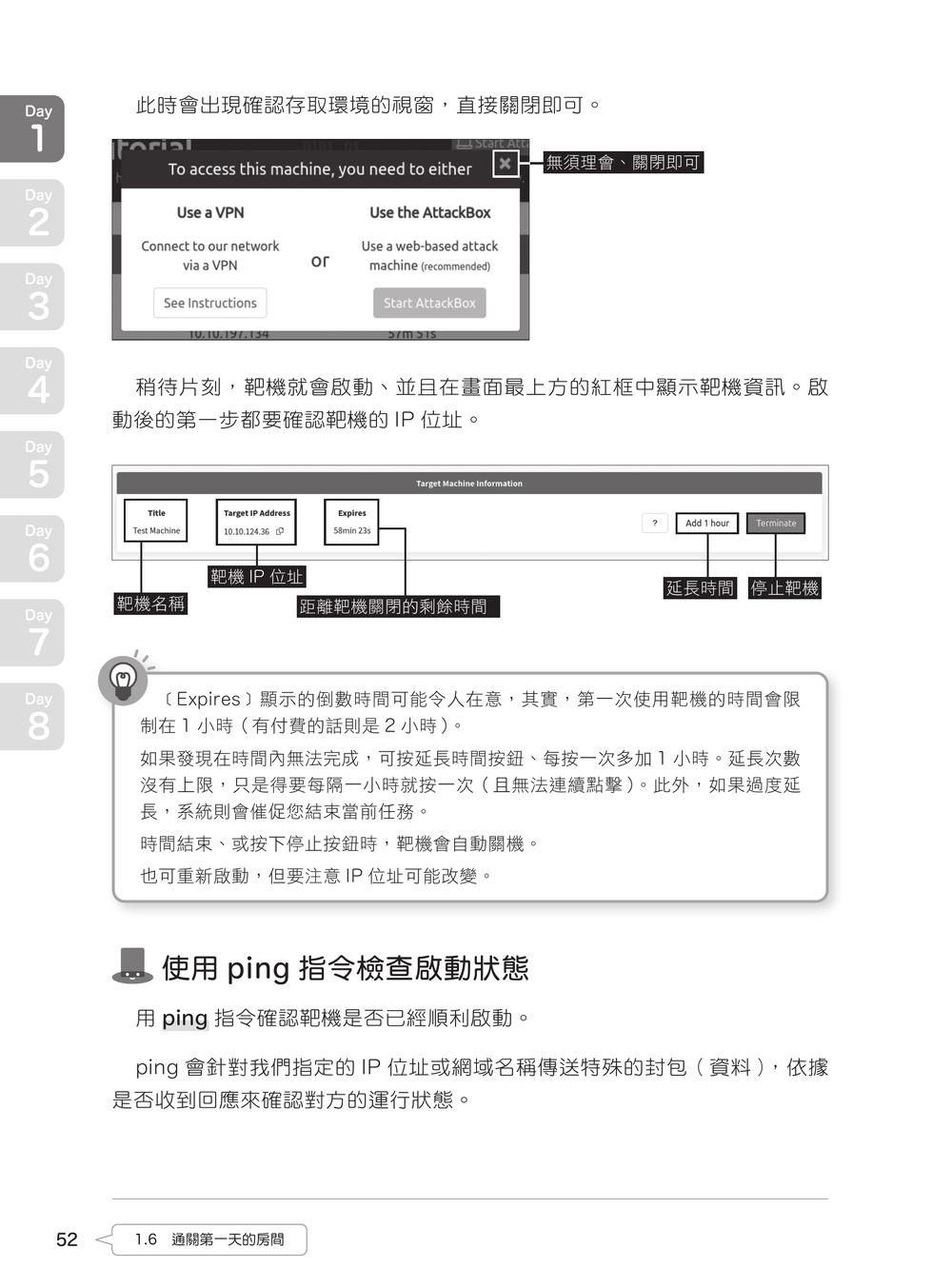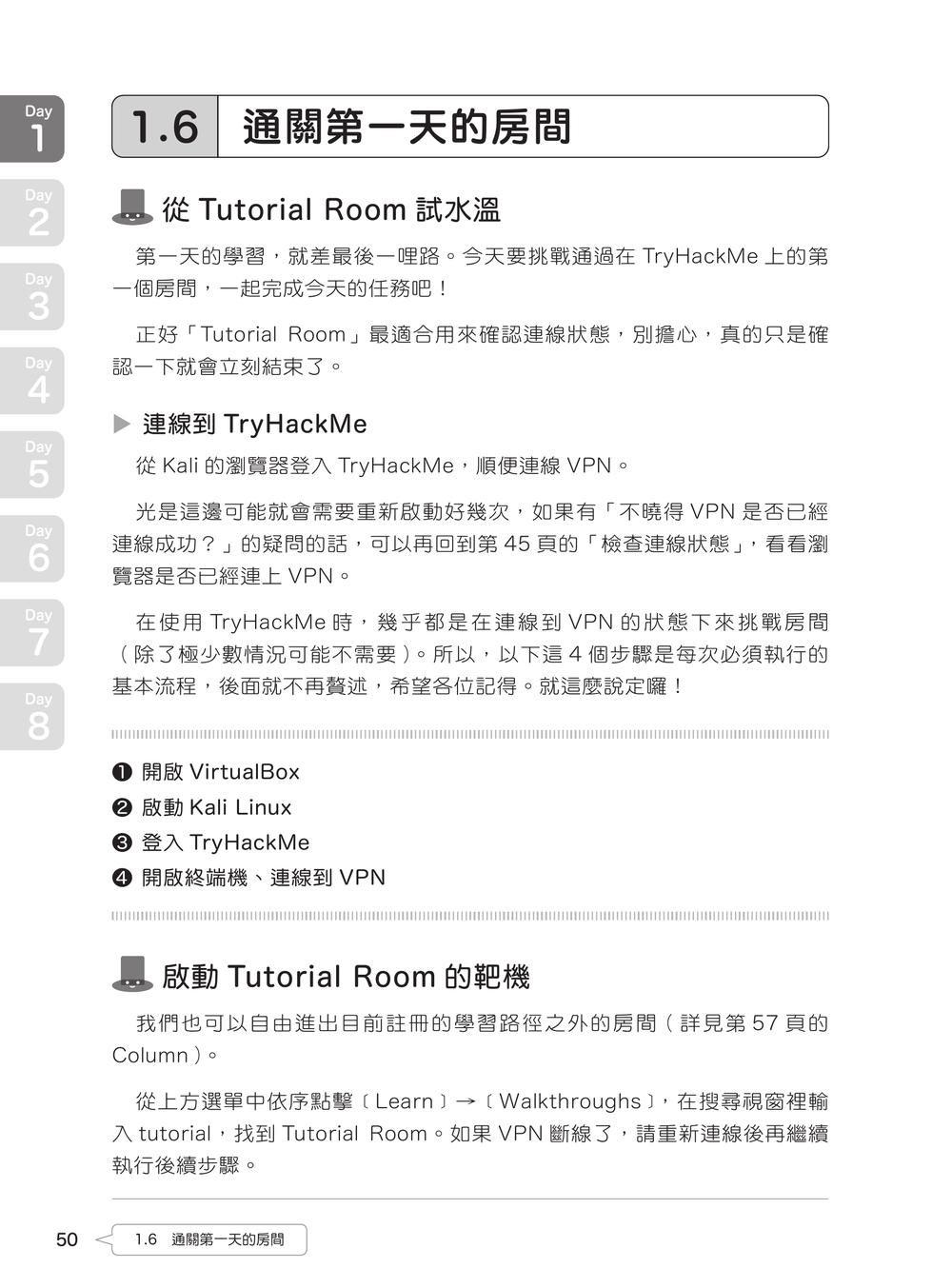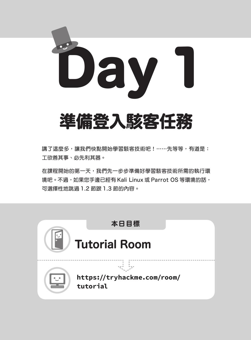 踏出邁向駭客的第一步本書的使命、重要注意事項需要的條件、相關知識享受學習駭客技術的過程軟體執行環境書中的 IP 位址標記方式認識學習平台 TryHackMeTryHackMe用詞講解Day 1 準備登入駭客任務1.1 註冊 TryHackMe1.2 安裝 Kali Linux1.3 初始設定1.4 VPN 連線1.5 備份1.6 通關第一天的房間Column:如何查找有興趣的房間Day 2 駭客任務首戰2.1 運用連接埠掃描偵查靶機2.2 瀏覽網站2.3 連線到 Samba 的共用資料夾,尋找線索2.4 用字典攻擊破解密碼2.5 入侵靶機2.6 接下來的路就靠你幫我走完囉!Column:該付費嗎?Day 3 試試看嚴禁惡意使用的漏洞利用(Exploit)3.1 偵查靶機3.2 調查發現的漏洞3.3 利用漏洞入侵3.4 操作靶機3.5 取得旗幟3.6 拿到使用者的密碼3.7 使用密碼登入 WindowsColumn:卡關了、該怎麼辦?Day 4 利用常見漏洞暢遊神祕商店4.1 在商店裡探險4.2 挑戰發動 SQL 注入攻擊4.3 濫用存取控制缺陷(Broken Access Control)漏洞4.4 嘗試不安全設計(Insecure Design)4.5 找到計分板、確認成果Day 5 從 Web 表單進行入侵5.1 偵查靶機5.2 調查 FTP5.3 調查 Web 網站5.4 調查上傳表單5.5 執行初步入侵5.6 調查提權的方法5.7 偷看管理員的旗幟Day 6 Attacktive Directory 駭客攻擊實作6.1 偵查靶機6.2 認識 Kerberos 驗證6.3 AS-REP Roasting 攻擊6.4 DCSync 攻擊6.5 Pass the Hash 攻擊6.6 取得旗幟Column:若您使用的 Mac 搭載的是 Apple Silicon 晶片Day 7 WordPress 駭客攻擊實作7.1 偵查靶機7.2 調查共用資料夾7.3 探索 WordPress7.4 執行初步入侵7.5 調查提權的方法7.6 攻擊 SUID 的設定漏洞7.7 取得旗幟Column:通訊狀況不良時該怎麼辦?Day 8之後 未來方針 & 挑戰山丘之王(KoTH)!8.1 參考學習路徑找到能做的事8.2 挑戰山丘之王(King of the Hill,KoTH)!