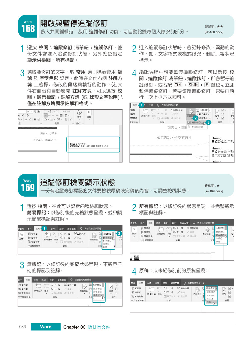 【Word篇 - 強化文書編輯與製作力】‧自訂操作環境‧文字格式設計‧段落編輯技巧‧活用表格製作‧圖文整合應用‧編排長文件‧合併列印與列印【Excel篇 - 掌握數據分析與試算力】‧環境與儲存格設定‧工作表基本管理‧函數公式應用‧圖表呈現大數據‧資料分析統計‧列印編輯【PowerPoint篇 - 提案簡報設計與傳達力】 ‧投影片基礎編輯‧視覺美化設計‧設定投影片母片‧打造動畫效果‧結合影音多媒體‧簡報放映與檔案管理【Office篇 - 協作運用提升職場工作力】整合文件、試算表與簡報附錄 A - Windows 10+瀏覽器Edge快速鍵應用技巧附錄 B - 取得免費中文字型與音訊素材