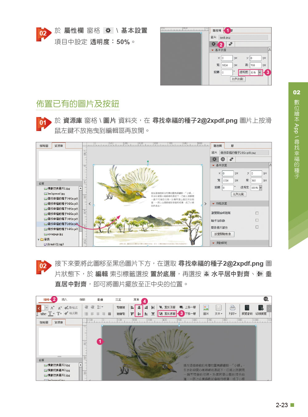 本書說明第1章 App開發新選擇 - [進入 Smart Apps Creator]Smart Apps Creator將App開發帶入新的領域,不需要長久學習,不需要程式設計,只要使用製作簡報的觀念與方式,即可完成跨平台的App開發。第2章 數位繪本App - [尋找幸福的種子]在"尋找幸福的種子"的範例中,從一個空白檔案開始,進行啟動頁佈置、導入PDF、插入目錄模版、設定翻頁效果到按鈕、音樂與口白音效的加入,產生一個能吸引眾人目光的互動式數位繪本。第3章 數位學習App - [中文筆順練習]在"中文筆順練習"的範例中,除了圖片、文字的基本佈置外,還有按鈕控制的加入、筆順動畫的呈現與互動效果的設定,為原本單調的中文學習增添趣味度。第4章 景點導覽App - [蘭嶼微旅行]在"蘭嶼微旅行"的範例中,結合了模版、氣泡文字、動畫、熱區、交互的設計,並插入網頁與音樂,最後加入Google地圖與手機撥號的功能,透過客製化的App提供獨一無二、量身打造的導覽體驗。第5章 音樂實用App - [鋼琴練習曲]"鋼琴練習曲"範例是很常見的音樂類型App,透過交互行為控制GIF圖片及音效的播放,搭配上圖片序列的樂譜,就可以輕鬆完成互動式鋼琴App。第6章 猜謎遊戲App - [一字千金]在"一字千金"的範例中,透過幻燈片、熱區及交互行為的設計重點,製作一款有趣成語填充的遊戲,讓您更加瞭解每個成語的含意與應用。第7章 益智互動App - [大家來找碴]"大家來找碴"屬於一款考驗眼力的益智遊戲,在二張相同的圖片上找出不同的差異點。在範例中加入計數器與倒數計時的技巧,為遊戲加入關卡的控制,都是在實作上相當重要功能。第8章 科展教案App - [霧社血斑天牛]"霧社血斑天牛"的範例中,將大量結合精緻照片、說明文字,並且配合App特有的互動與效果,為一般科展教案增添更多引人入勝的內容。第9章 資料應用App - [來去農村住一晚]在"來去農村住一晚" 範例中,利用資料列表匯入公家機關平台的開放資料,編輯完成後再生成HTML 5文件檔,上傳至免費網站空間,讓您不用懂艱澀的程式語言,也能製作出色的專題。
