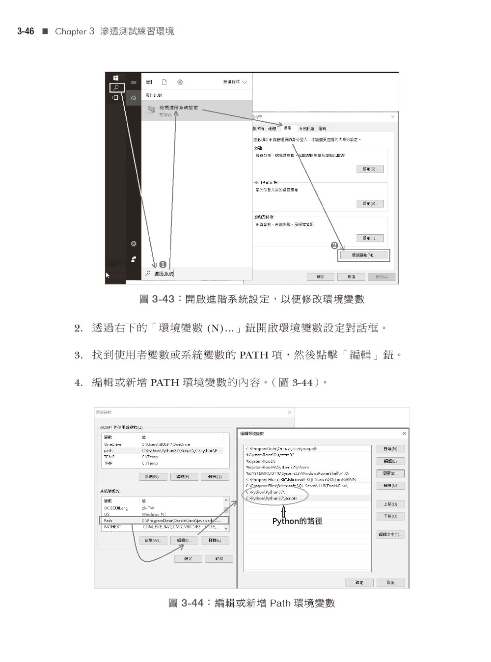 第一章 關於滲透測試第二章 滲透測試基本程序第三章 滲透測試練習環境第四章 網站弱點概述第五章 資訊蒐集第六章 網站探測及弱點評估第七章 網站滲透工具第八章 離線密碼破解第九章 滲透測試報告第十章 持續精進技巧附錄一:滲透測試足跡蒐集檢查表附錄二:滲透測試同意書(範本)附錄三:滲透測試計畫書(範本)附錄四:滲透測試報告書(範本)附錄五:滲透測試紀錄(範本)附錄六:後記:滲透測試人員的危機與契機