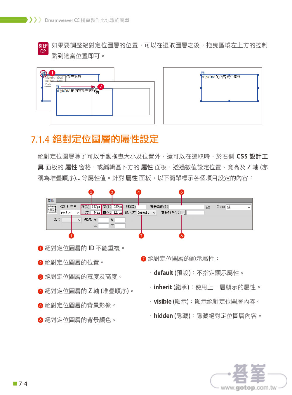 chapter 01 跨越不同平台的網頁設計軟體chapter 02 開始規劃網站chapter 03 記錄旅行的起點 - 文字與影像chapter 04 熱門景點的介紹 - 超連結的設定chapter 05 旅遊資訊的分享 - 表格的使用chapter 06 旅行點滴的雜記 - CSS 的設計chapter 07 地圖展示 - 絕對定位圖層與行為chapter 08 重現感動的片刻 - 多媒體的呈現chapter 09 與我聯絡的介面 - 表單的加入chapter 10 範本應用chapter 11 網站檔案發佈與維護chapter 12 整合雲端工具chapter 13 使用 CSS Div 網頁排版 chapter 14 jQuery UI 工具集chapter 15 行動裝置網頁的設計