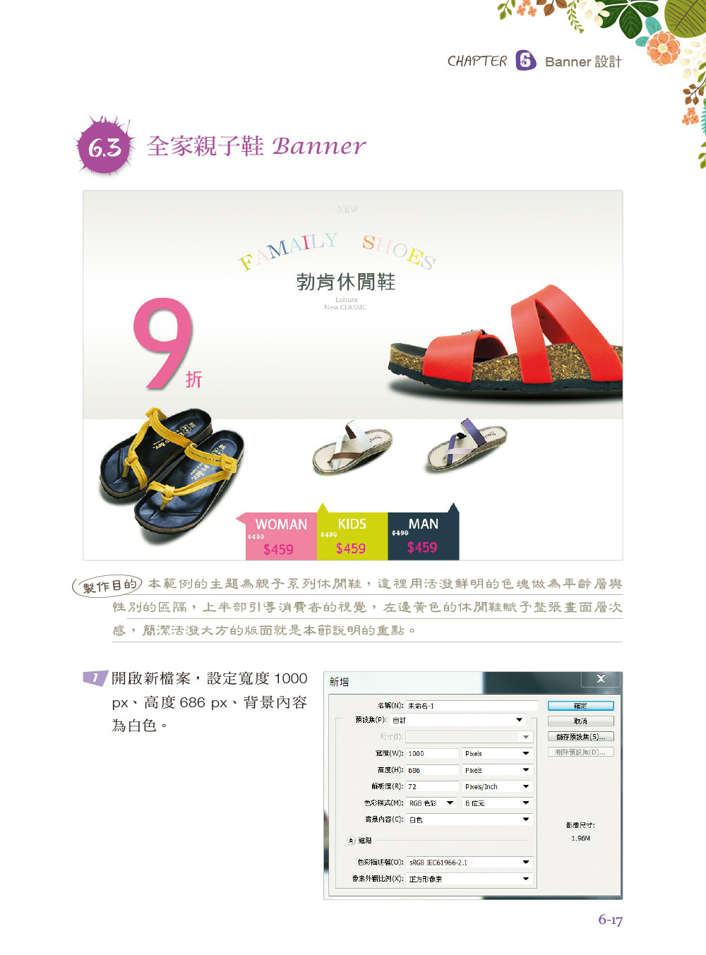01 攝影分享相機的基本知識與使用,想拍的專業點,可不是拿起相機來,快門隨便按隨便拍就可以。具有一些專業知識後,才能精準抓住每張照片的需求與風格,而不是靠著運氣去拍照。另外,分享專業網拍攝影棚場地佈置與打光方法,除此之外,也會分享如何用微成本拍出有氛圍的商品照。02 商品照片編修本章正式進入Photoshop的軟體應用,商品拍攝完畢後,加上修圖技巧就能為商品加分。不藏私的傳授網拍修圖必學技巧,只要幾個步驟就能解決影像問題,還有加快修圖流程的必修工作術。03 人像照片編修從商品照片編修轉為人像照片編修。這裡精選出多項在網拍實用的人像編修技巧,融會貫通後,即可與第二章的技巧做結合,增加軟體使用的廣度。04 去背妙招網拍照片的編修中,最重要的技巧就是去背,去背過後的商品就可以提供很多的延伸用途。在進入第六章之前,一定要先學會這個技法。無論是要自己開網店,或是當SOHO 族接案,必定讓你受用無窮!05 網店頁面製作對實體店家來說,此章節就等於是分享如何進行店裡的裝潢,而對網店來說,Logo識別的風格、頁面的配置、購物說明等等,就是能夠塑造訪客對自己網店形象的要素。除了在茫茫網店中可以走出自己的風格,吸引買家購買之外,還可以提升網店的專業形象,進而提升回購率。06 Banner設計網店的首頁廣告非常重要,就如同進入百貨公司的大門,所有的優惠活動、類別專區,必須要能夠讓顧客一目瞭然,達到吸引消費的目的。本章分享幾個實用的Banner案例,藉由範例實作,能學到更多Photoshop的技能運用。