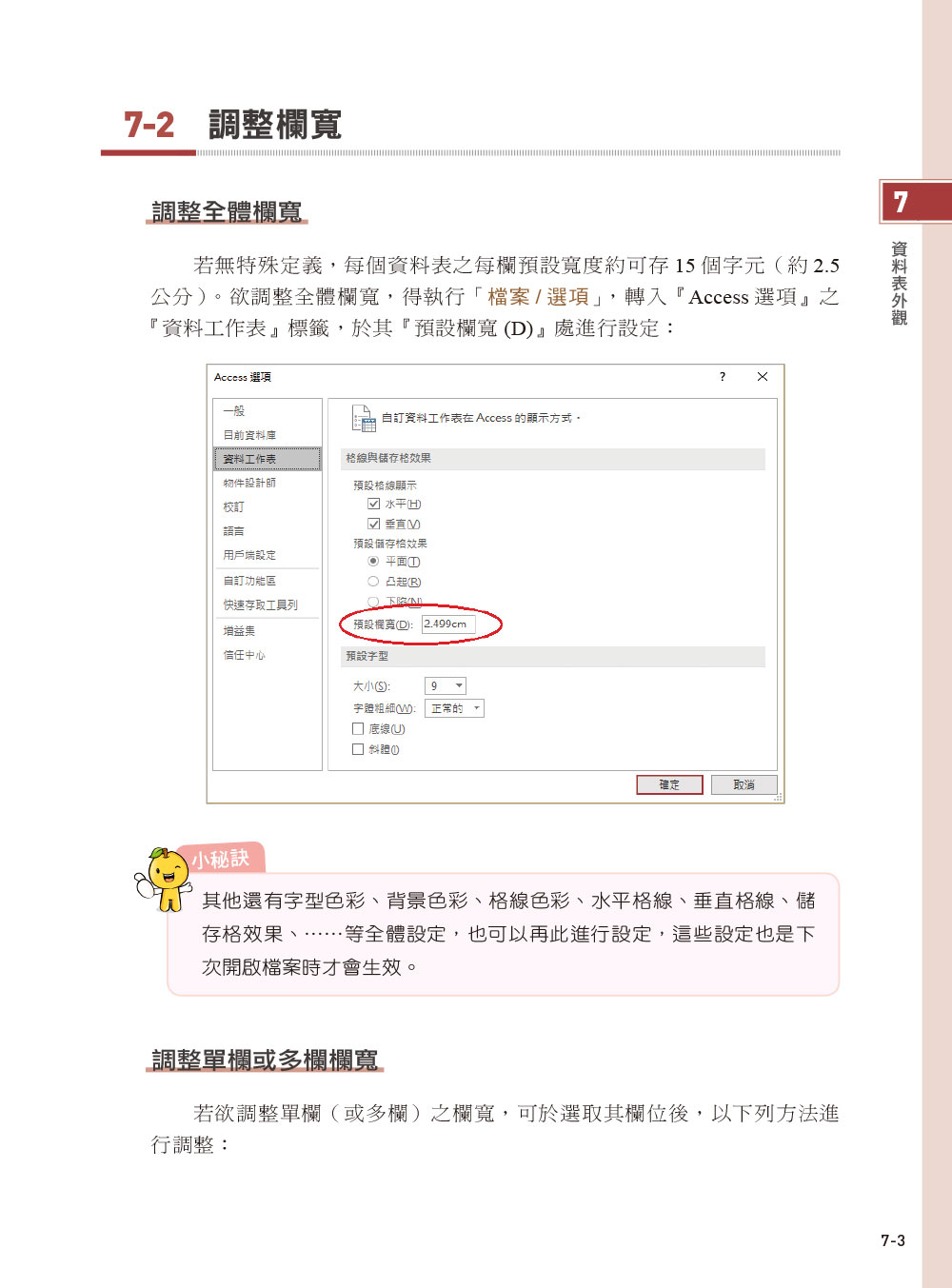 ch01 Access 簡介ch02 資料庫基本動作ch03 建立資料表ch04 資料表進階設定ch05 建立『員工』資料表ch06 記錄管理ch07 資料表外觀ch08 索引與排序ch09 篩選ch10 查詢ch11 進階查詢ch12 交叉資料表與動作查詢ch13 關聯ch14 表單ch15 報表ch16 自行設計報表ch17 巨集ch18 起始畫面與主/次選單