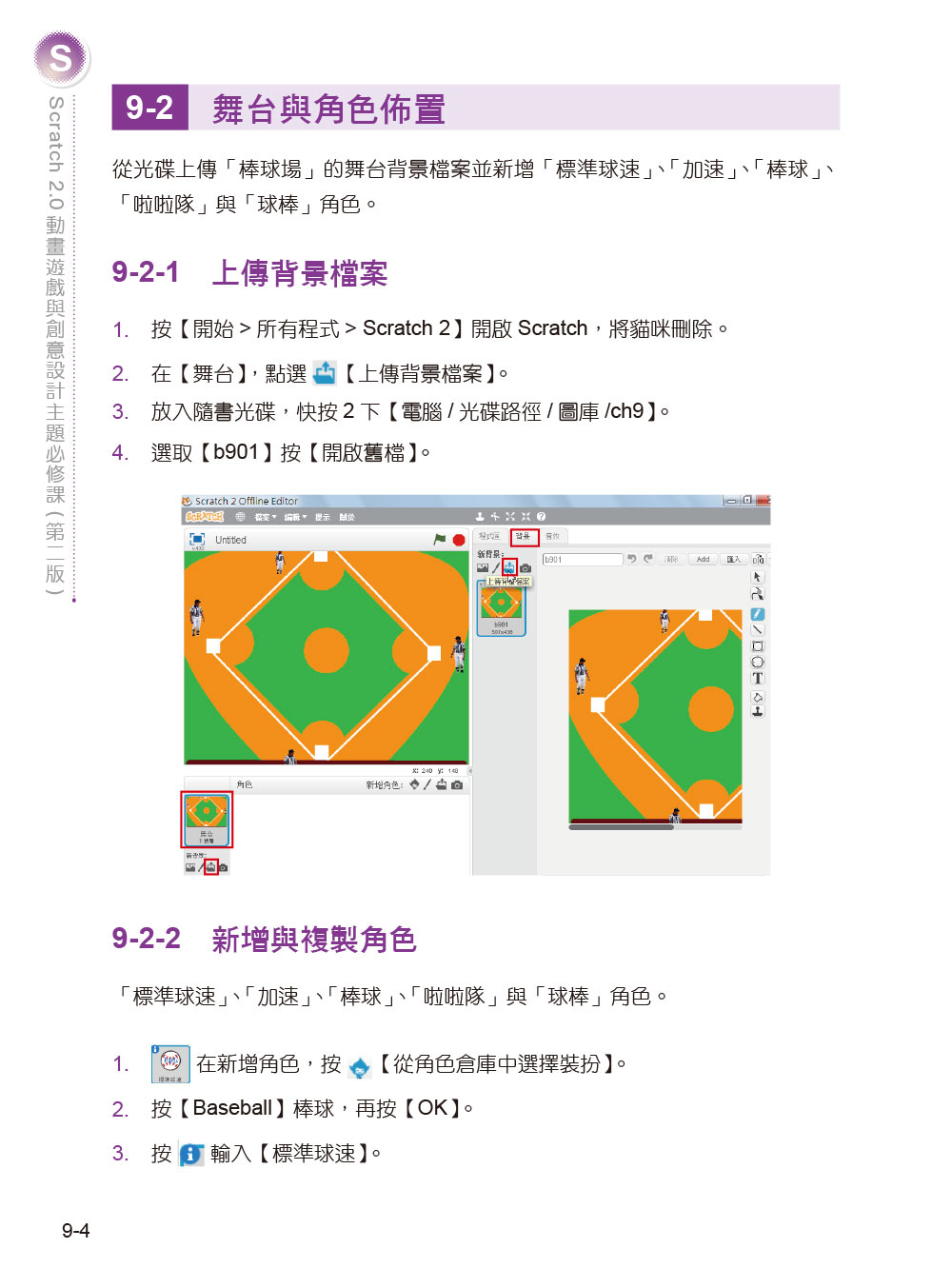 01 八大行星連連看介紹Scratch、下載並安裝Scratch 2.0,再開始堆疊程式指令積木,設計八大行星連連看程式。當綠旗點一下程式開始執行時,八大行星不停重複運轉、當每個行星被點一下時自動移到距離太陽的正確位置。02 自動感應吸塵器介紹Scratch與應用設計流程,設計一個自動感應吸塵器,當吸塵器開關點一下,便開始執行,吸塵器自動運轉,碰到地板上的頭髮或餅乾屑,全部隱藏吸乾淨。03 關於我應用Scratch移動或旋轉等「動作」類別指令積木設計一個關於我的專長專題。我的專長內容,包括: 上下、左右重複滑動、360 度旋轉、飛簷走壁移動,以及跟著滑鼠的游標移動等。開始時,先從長相相同的二角色開始對話,再由「About Me」按鈕角色點一下切換下一個專長播放。04 自動點號機設計自動點號機程式,當開始角色按鈕被點一下時,廣播開始。當點號機接收到開始時,在全部號碼間隨機移動、選號、顯示在已選號碼的最上層並說出選中的號碼,再針對選中的號碼顯示顏色特效。05 天才演奏家彈奏音符設計彈奏樂器的方式,包括:鍵盤按下彈奏音符、滑鼠點一下比薩斜塔彈奏音符或彈奏鴿敲擊,而彈奏樂器種類選擇方式包括: 滑桿拖曳選擇、角色點一下比薩斜塔的樂器名稱或直接輸入21種樂器聲音。06 時鐘利用運算與動作旋轉功能設計時鐘程式,當開始執行時,時鐘偵測目前的時間,再依時針、分針與秒針開始運轉。運轉時利用運算指令積木計算時針、分針與秒針的旋轉角度。07 電子賀卡e-card製作一張電子賀卡,開始執行時,顯示「賀卡首頁」及「Open」角色,點一下「Open」,賀卡翻至內頁,播放「聖誕快樂」歌,播放歌曲時顯示“Merry Christmas"跑馬燈、鈴噹及雪花,同時利用分身工具讓一片雪花不斷產生分身,變成滿天雪花不停飛舞閃爍及縮小。08 月亮變化設計月亮的變化,利用鍵盤控制功能,按「空白鍵」開始執行1~30 月亮變化、按「S」停止自動播放、按「Q」查詢特定日期月亮變化、並判斷輸入日期為滿月、新月、上弦月或下弦月。09 打棒球利用視訊偵測( 或計時器),設計打棒球專題。首先棒球機自動偵測影像,如果有視訊動作( 或計時器計時超過10 秒) 就說:「歡迎光臨、請選擇球速」。接著打擊者點選「球速」角色、選擇球速、開始打擊,倒數計時三分鐘。每打擊一球就獲得「打擊1 分」、當打擊5 分以上出現啦啦隊加油! 每隔10 秒再度顯示加油。10 線上測驗大考驗本章將利用Scratch 變數、提問與造型,設計線上測驗程式。首先新增角色,利用角色造型設計測驗題目、再由題目角色出題、並判斷使用者輸入的答案是否正確、如果正確將「正確變數」增加1 分。11 畫圓求面積利用Scratch運算及畫筆,設計畫圓求面積的計算步驟及計算結果。首先輸入半徑、開始畫圓、完成之後停筆、計算圓周長與圓面積,指令積木執行過程中會說明每個計算的公式及結果。12 打字練習大考驗製作英文打字鍵盤指法練習程式,開始執行時,先顯示鍵盤A~Z的位置,等待使用者輸入按鍵位置「Q~P」、「A~L」或「Z~M」三列選項、再開始指法練習。當使用者點選「A~L」角色,開始練習A~L 鍵。練習時鍵盤按下「A」,播放A 音效再隱藏,依序重複練習三次,其次出現「S」依序練習。除了指法練習之外還包括:「英打大考驗角色」、「停止」及「顯示」角色,當使用者點選「Quiz」角色,進入英打大考驗遊戲動畫、點選「Stop」角色停止所有程式執行、點選「Show」角色顯示按鍵位置。13 認識台灣拼圖利用距離偵測製作台灣拼圖,先顯示台灣地圖特效,等待使用者點一下開始拼圖。拼圖過程中每一個縣市的拼圖會隨著滑鼠游標移動,當每個縣市移到距離正確位置小於10 時,自動移到正確位置。拼圖的功能還包括:(1)計時器,計算拼圖所需時間;(2) 說明按鈕,當使用者按說明時,顯示台灣地圖提示。14 想像力超連結利用A~Z字母製做與字母相關的單字及圖片,當使用者點一下字母「A」連結到「A」字母相關的圖片背景,當使用者點一下「首頁」連結回到A~Z 字母首頁。15 數學大冒險設計輸入某一數N,計算N的總和、N範圍內的奇數、奇數和、偶數、偶數和、N階乘及九九乘法。計算過程中利用清單功能,將N 的個數或N 的奇數及偶數加入清單列表、計算結果、說結果總和、並將運算結果加入結果清單。16 迷宮闖關大考驗整合Scratch功能製做一個迷宮闖關大考驗的動畫遊戲,一開始先顯示動畫遊戲說明首頁,等待使用者點一下開始角色,才進入動畫遊戲。遊戲從一個闖關者開始闖關,總共2 個關卡、闖關者有4 個生命值,碰到各關卡的角色就會減損一個生命值,並且回到原點。當生命值等於零時或時間到,結束遊戲。附錄(此單元為pdf電子檔,請見書附光碟)A 指令積木功能對照表B Scratch與LEGO WeDo及PicoBoard應用C 我的創意規劃表