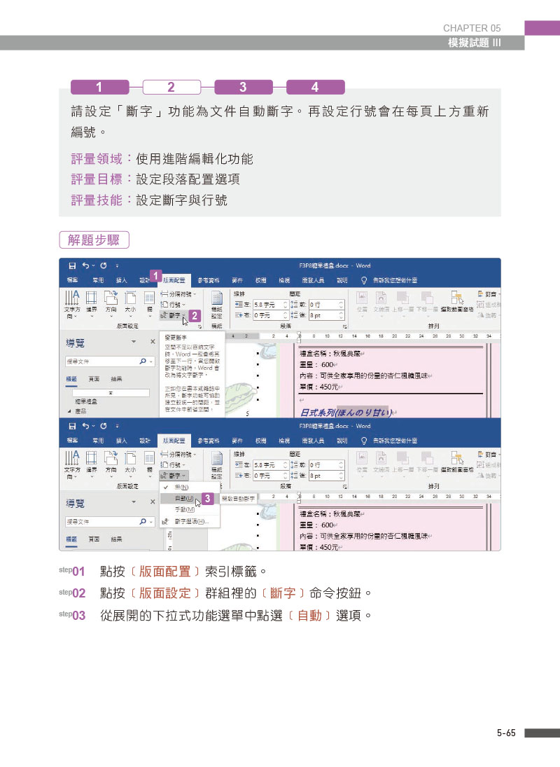 ★該測驗透過各種專業目的和情況下能建立並管理專業文件,具有Word進階功能的正確應用能力。