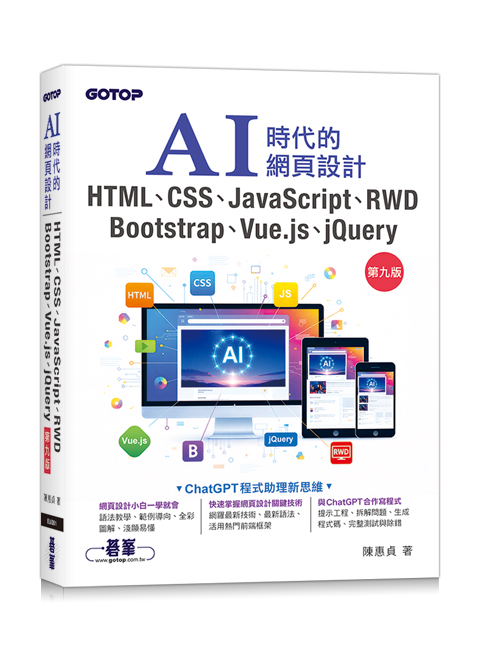 AI時代的網頁設計HTML、CSS、JavaScript、RWD、Bootstrap、Vue.js、jQuery(第九版)