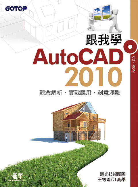觀念解析.實戰應用 .創意滿點 * AutoCAD 2010專業繪圖的入門工具書,適合教學及自學。* 範例充沛,讓您學習更easy。* 本書內容包含AutoCAD的繪圖基本功能、進階的繪圖功能、尺寸的標註、文字的加入;而有關物件鎖點、環境設定、整合應用…等課題,本書也都以範例為導向來說明,讓您對AutoCAD更了解、更易上手!* 針對3D立體圖形的繪製與編輯,是採用實例以深入淺出的方式說明,閱讀完後即可輕輕鬆鬆繪出3D實體圖形!* 本書特別說明了視覺型式、光源、材質貼附以及彩現作業。* AutoCAD 2010除了有全中文化的操作環境、動態輸入、動態圖塊、可註解物件、多重引線、資料庫與表格連結…等功能,更新增了參數式製圖、自由式設計工具功能,還加強了PDF格式的支援。