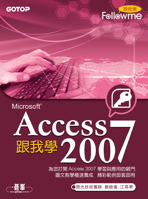 第一章 資料庫概論與Access第二章 建立與管理Access資料庫第三章 設計與建立資料表第四章 資料工作表--輸入、排序與篩選第五章 建立資料關聯第六章 設計與建立查詢第七章 設計與建立表單第八章 設計與建立報表第九章 Access在Web上的應用第十章 與Office 2007其他軟體整合第十一章 好用的資料庫工具第十二章 SharePoint清單附錄A 淺談巨集與模組附錄B Access 2003與Access 2007指令對照表