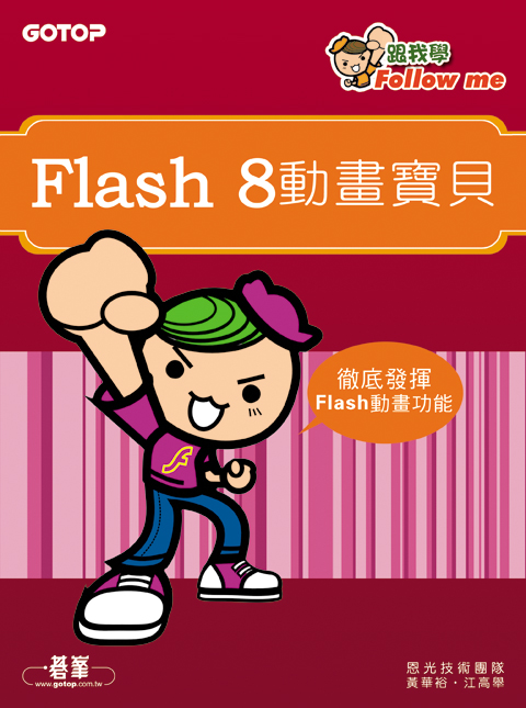第一章 Flash入門第二章 繪圖工具總覽第三章 動畫製作原理解析第四章 元件與元件庫第五章 神奇的ActionScript第六章 文字特效第七章 遮色片的運用第八章 音效特攻隊第九章 有趣的滑鼠特效第十章 使用樣版與組件第十一章 著色遊戲第十二章 網頁發佈