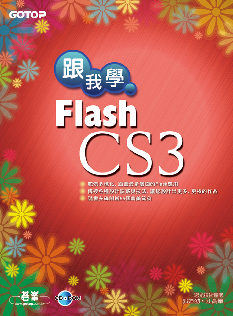 第一章 輕鬆認識Flash第二章 繪圖工具的使用第三章 顏色與文字的處理第四章 動畫製作原理解析第五章 元件與元件庫第六章 ActionScript與行為指令第七章 文字特效第八章 有趣的遮色片第九章 滑鼠特效第十章 音效攻隊第十一章 自製電子鐘第十二章 檔案的匯出與發佈